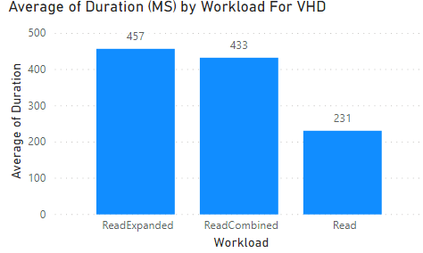 We are looking at the average duration of each test by type. We're seeing that the slowest is using a read with an Expand() operation. Next is read combined where we're getting a Sales Order Line as one request and the header as another request. Next, the fastest is just getting a Sales Order Line. At face value, this sort of makes sense. However, let's look at the next chart for a surprise.
